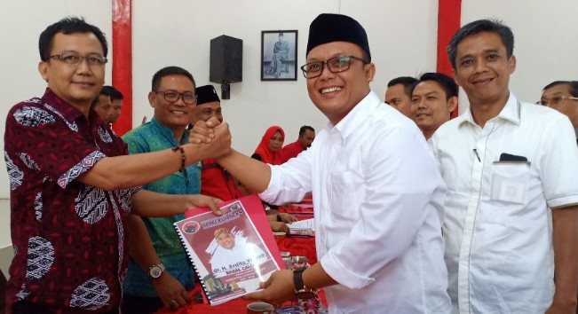 Radarlamteng.com, GUNUNGSUGIH – Ketua DPD II Golkar Lampung Tengah, Musa Ahmad mengembalikan berkas formulir bakal calon bupati di DPC PDI Perjuangan Lampung Tengah berbarengan dengan Ardito Wijaya, yang juga mengembalikan berkas formulir sebagai bakal calon wakil bupati, Kamis (19/09/2019).