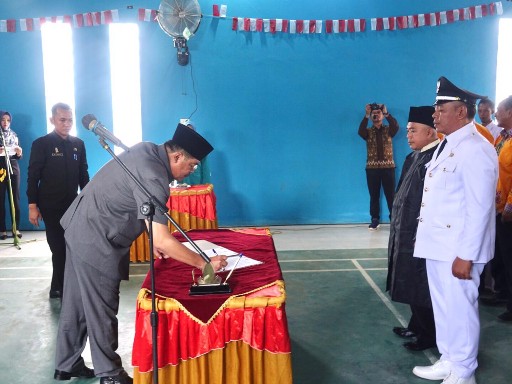 Radarlamteng.com, WAYPENGUBUAN – Bupati Lampung Tengah Musa Ahmad melantik Kepala Kampung (Kakam) Banjarrejo M. Nasikin, yang terpilih sebagai Kakam kampung tersebut melalui proses PAW pada 28 Juli 2022, di aula gedung serba guna kampung setempat, Rabu (10/8/2022).