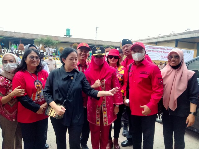 Tampak hadir mendampingi Puan Maharani dalam acara tersebut, di antaranya Ketua DPRD Kabupaten Lamteng Soemarsono dan juga hadir Ketua PDIP Lamteng Loekman Djoyosoemarto.